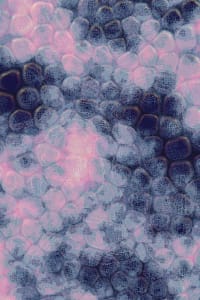 Inspired by my decade-long fused glass practice, amorphous lucid forms distort and magnify richly-detailed abstract backgrounds and play with our sense of scale.